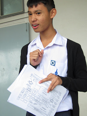 Yesterday Brandon and I tagged along on a field trip to the Academic competition in Suphanburi (next province over from us). We awoke in the wee hours of our Saturday morning to support and hang out with our students we had been tutoring prior to this event. There were multiple competitive categories for every subject and a full science fair!